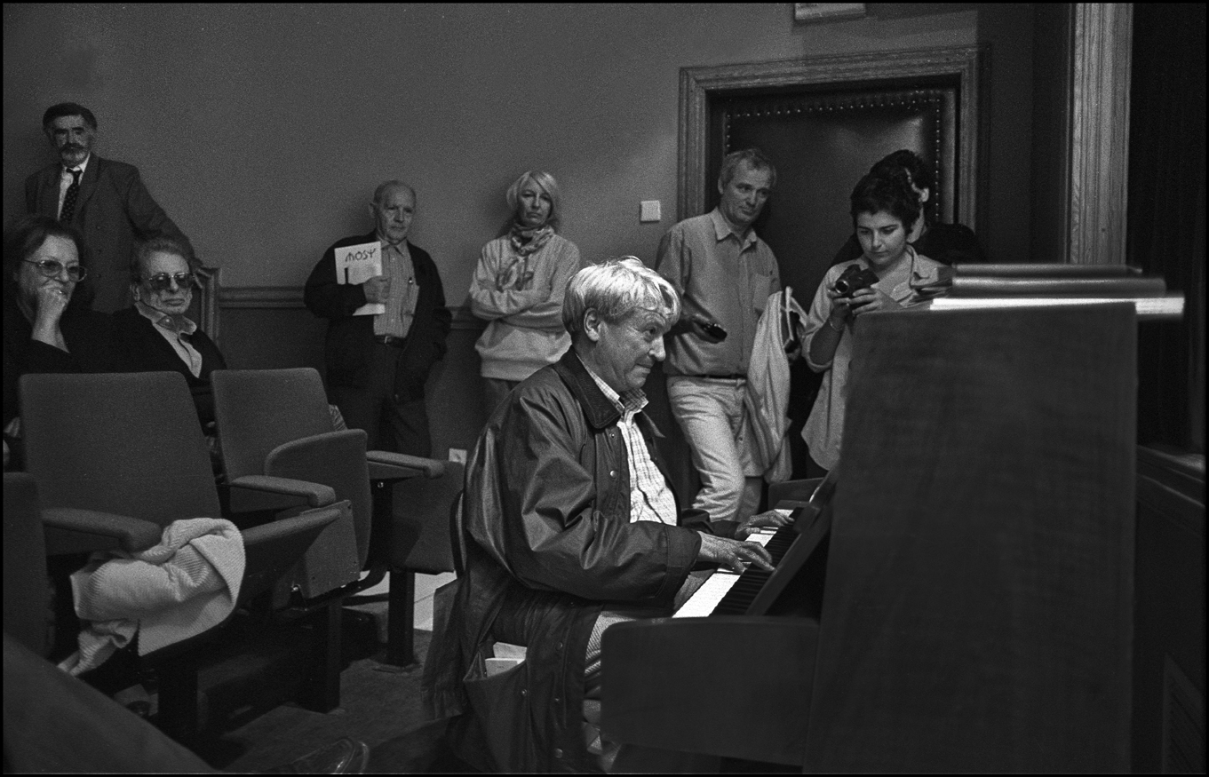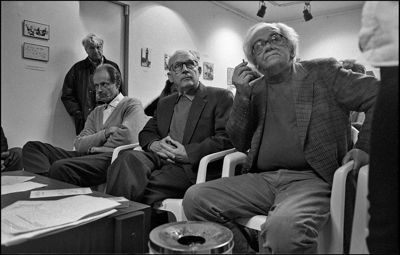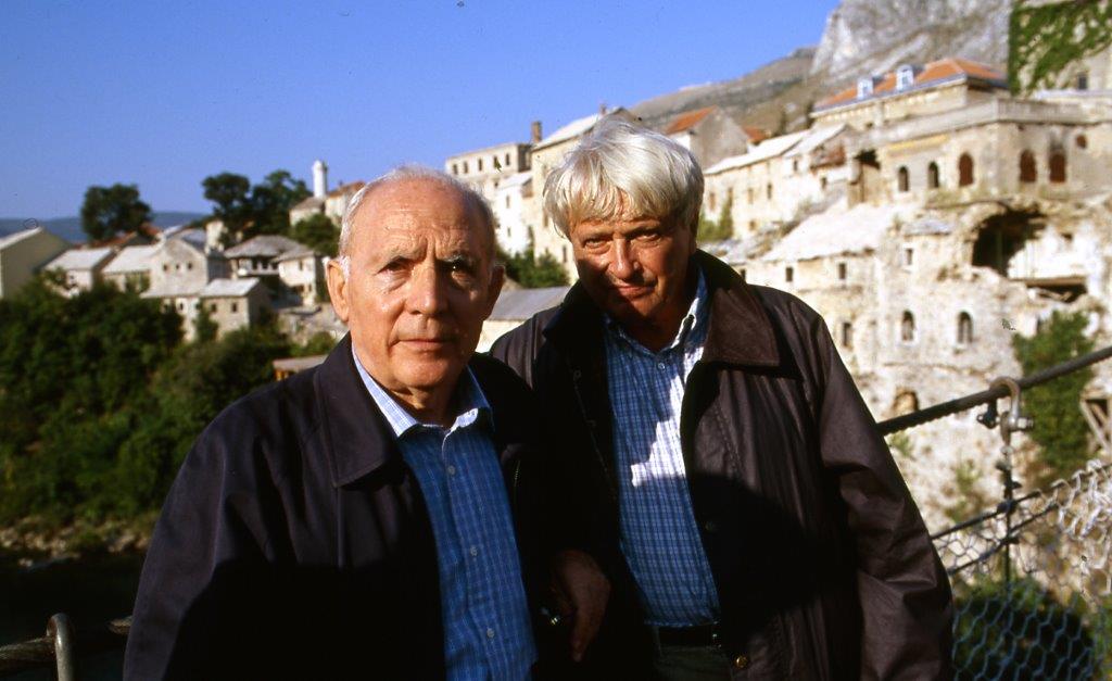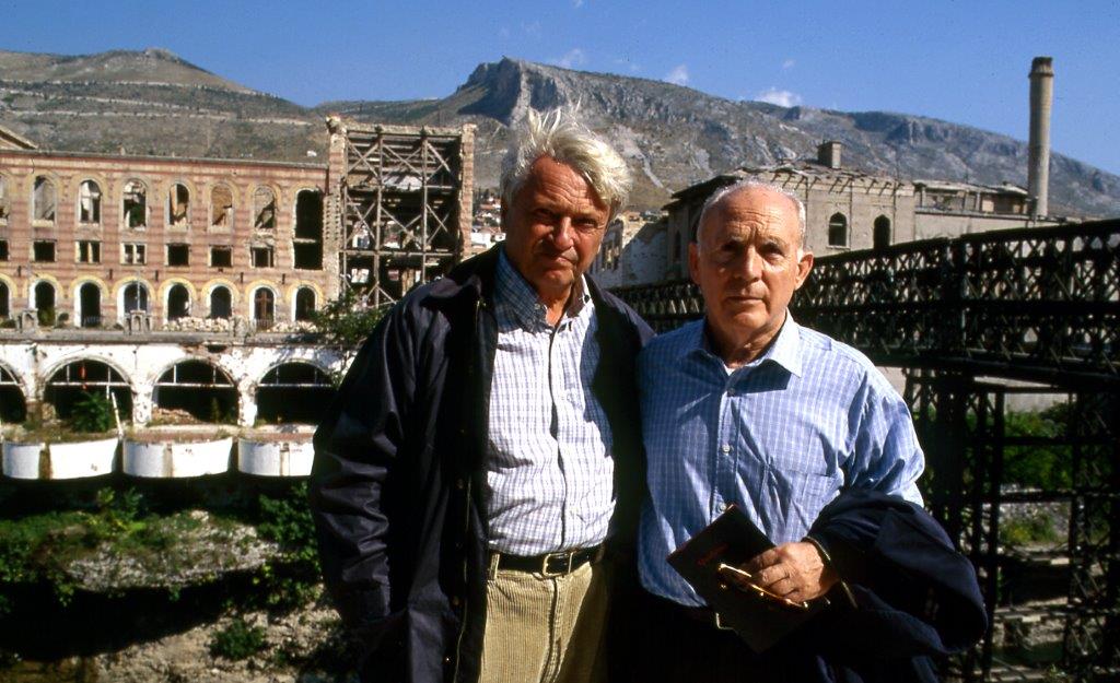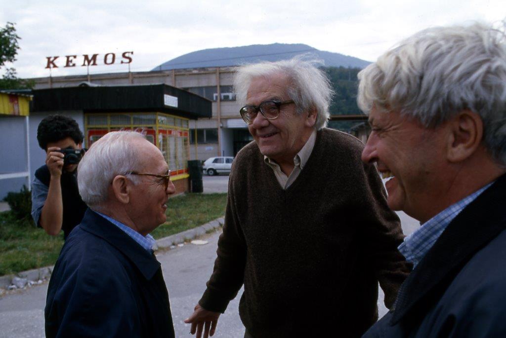 Abbiamo altri incontri a Sarajevo, all’Ambasciata italiana, alla Biblioteca Nazionale, al Museo della Letteratura, alla Facoltà di Economia. Ripartiamo per Mostar. Casualmente, il nostro passaggio per quella città coinciderà con la cerimonia del recupero dalle acque della Neretva delle prime pietre dello storico ponte (Mostar, ci spiega Matvejevic, significa «guardiano del ponte o Vecchio Ponte»). Grande è l’importanza del ponte, dei ponti in questa terra di fiumi, alle sponde dei quali si sono formate le città, si è aggrumata la civiltà. Contro di esse si sono accaniti i montanari serbi e montenegrini. Per la strada, ci sorpassa il corteo delle macchine del presidente Izetbegovic. La città è in festa, la gente è ammassata lungo le due alte sponde del fiume, ha invaso le case che si affacciano vicino ai due monconi del ponte. Discorsi ufficiali, bandiere, fanfare, elicotteri in cielo. È con noi, con Pedrag, il pittore mostarino, ma abitante a Sarajevo, Afan Ramic. Prima della guerra non faceva che dipingere questo “suo” ponte, dopo il disastro, dopo l’uccisione del figlio, fa collages di materiali calcinati o bruciati, fa quadri che ricordano quelli del nostro Burri. È con noi anche il famoso tuffatore Balic, ci dice che ventuno membri del Club dei tuffatori sono morti nella difesa di Mostar.