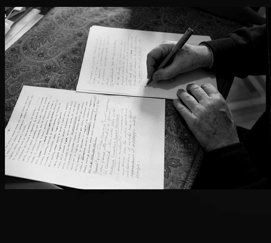 La ricorrenza ci fa pensare a uno scrittore di grande, cordiale umanità, cultura, rigore democratico, antifascista e antimafia; autorevolmente impegnato per la giustizia e la pace con gli scrittori del Mediterraneo. Come dimenticare la sua prosa severa, dotata di speciale lirismo e la sua narrazione profondamente legata alla storia. Me lo fece conoscere Grazia Cherchi nel 1987 quando lui abitava a Milano in via Volta. Diventammo amici. Lo fotografai in diverse occasioni, anche a casa mia a Brescia, ma soprattutto nel suo appartamento in via Statuto (quelle qui pubblicate) nel 1998. Per Grazia eravamo “i due Vincenzi”. Io Vincenzo, lui “il Maggior Vincenzo”.